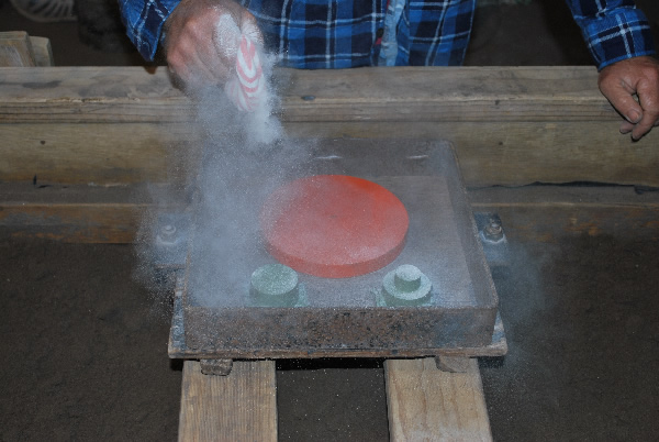 Dusting with partine (talcum) to separate the patterns from the sand.