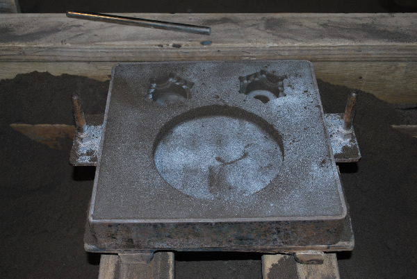 Partine to the sand and patterns to stop the two halves from sticking together.