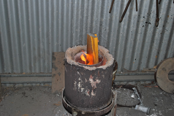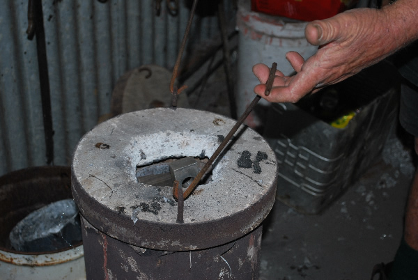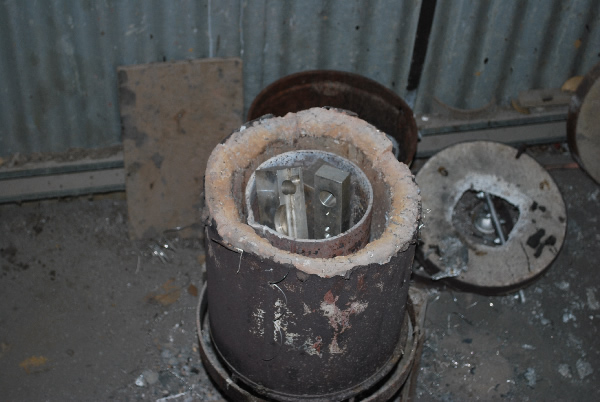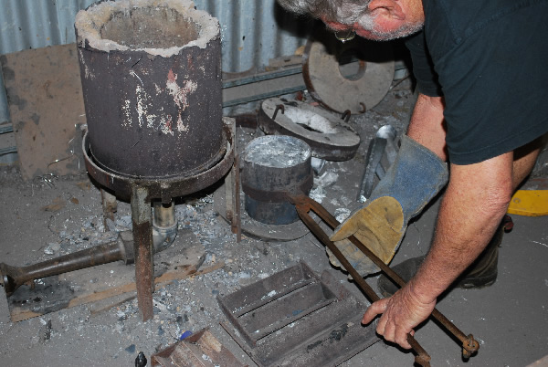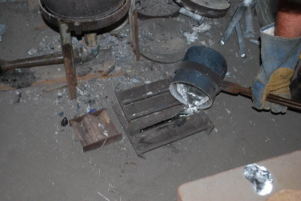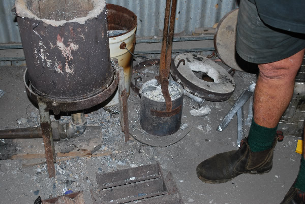 Pick up the pot with pouring tongs – one glove close to pot 650 degrees C.
